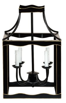Introducing our elegant Black & Gold Lantern, a must-have for any luxurious space. Its hand-painted gold trim adds a touch of opulence. Includes chain and ceiling cap for easy hanging. Electrified for your convenience. The perfect addition to your home decor.