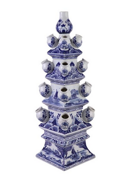 Capture the essence of timeless elegance with our Blue and White Tulipiere. Each piece is a masterpiece of craftsmanship, adorned with delicate blue and white hand-painted village scenes that wrap around the entire body of the tulipiere. Perfect as a standalone statement piece or paired with its companions, this tulipiere is composed of four separate pieces.