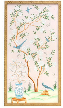 Elevate your space with the timeless elegance of chinoiserie hand-painted murals. Each mural is meticulously hand-painted by skilled artisans, capturing the intricate details and rich colors characteristic of the chinoiserie style. The design often features delicate floral patterns, serene landscapes, and intricate motifs inspired. Whether depicting graceful birds perched among lush foliage or tranquil scenes of nature, these murals are crafted to transport you to a world of beauty and refinement.