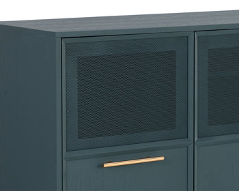 With a timeless design, the Rivero Sideboard is a delightful addition to any space. Crafted with a teal oak veneer for a subtle pop of colour, and complemented with a light wash rubberwood base. Includes ample storage with metal hardware in a gold finish. As wood is an organic, porous material, these pieces will contain natural variation of texture and may also exhibit fine indentations and cracks. Wood pieces will also display a disparity of colour and grain, and visible knots and burls that add to the character of each piece.