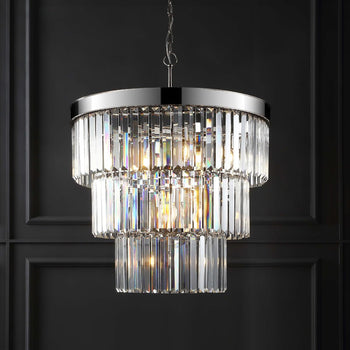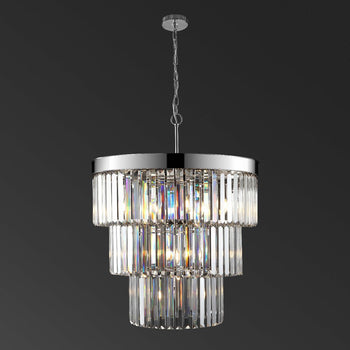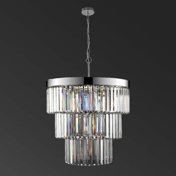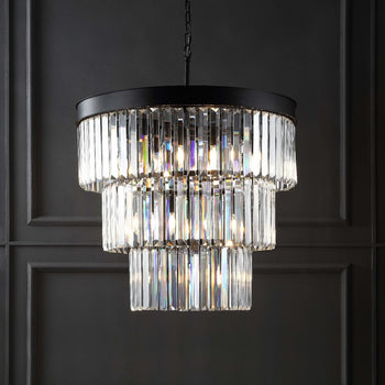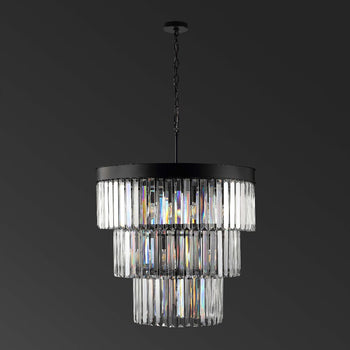 Indulge your decor with the aristocratic appeal of this absolutely breathtaking Coulette Chandelier. Boasting three tiers of elongated crystal prisms cascading from a jet black metal frame, Coulette abounds with unapologetic glamour, making it a standout in any interior.