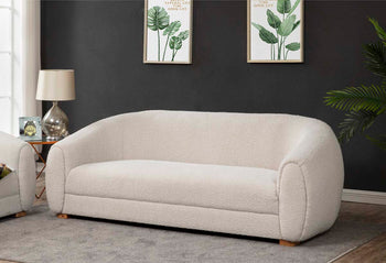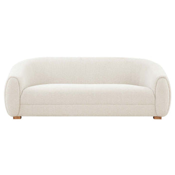 Glamorously minimalist, this Emiliana Sofa is effortlessly fabulous. Emiliana's contoured, encompassing silhouette is beautifully enhanced by the luxuriously intriguing texture of its ivory boucle upholstery, and its continuous cushion creates a streamlined look that's utterly cosmopolitan.