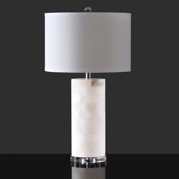 Hearkening back to the palaces of ancient Greece, this Massey Table Lamp redefines regal. Massey's columnar body is meticulously handmade, beautifully showcasing its mosaic design of white alabaster, while its crystal base and finial add a decidedly decadent touch.