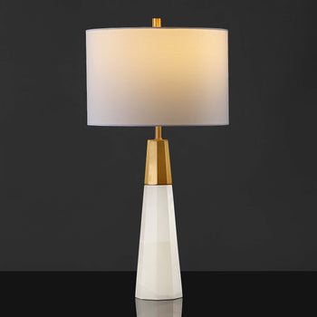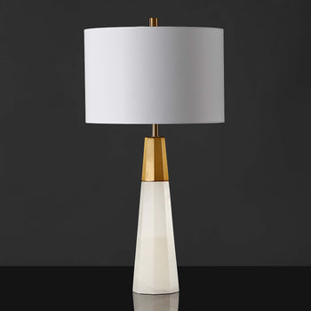 Give your decor the final finesse it craves with this stellar Toto Table Lamp. A penthouse favorite, Toto's faceted conic silhouette in hand-sculpted white alabaster surges with unmistakable glamour, further enhanced by its artistically asymmetrical gold metal detail.