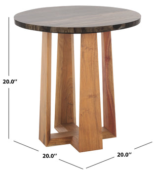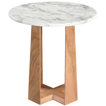 Update any corner with the modern charm and grace of our Trenton round accent table. Mixed-material elegance lends polished contrast and elegance to our streamlined accent table. The thick, tapered legs of the table gracefully intersect to attain an eye-catching presence. Its round tabletop showcases the natural veining of white marble. It is complemented with the rich tonal variation and organic textures of Acacia wood. Creating a beautiful harmony of textures, our accent table adds visual character and charm to your favorite sofa or armchair.