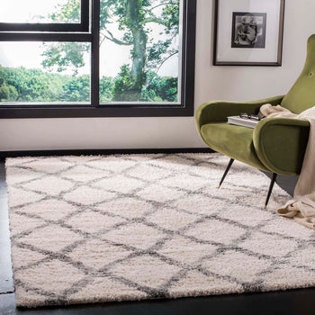 Transform your living space with the luxurious touch of our 2' X 4' accent area rug, a soothing blend of cream and grey hues that exude elegance and tranquility. Carefully crafted in Turkey using advanced power-loomed technology, this rug showcases a timeless Shag & Flokati style that brings both comfort and sophistication to any room.