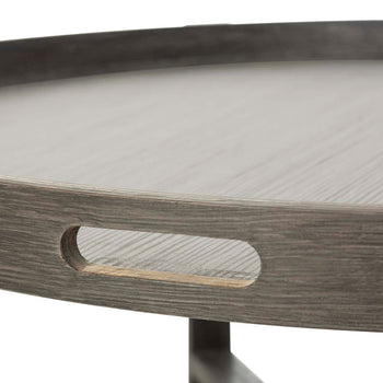 Warm and inviting, this contemporary coffee table was inspired by the home of an iconic Finnish designer and architect. Its deep dark grey hue and generous round figure with x style base bring soft geometric form to the modern interior. A modern classic.