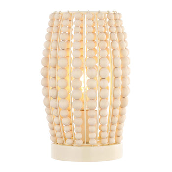 At Home In Any Boho Or Contemporary Interior, This Darrow Table Lamp Is An Alluring Addition To Your Decor. The Soft Cream Tone Of Darrow's Streaming Wood Beads Allows For A Warm Glow Amidst The Artistic Negative Space, Beautifully Illuminating Its Stylish Surroundings.