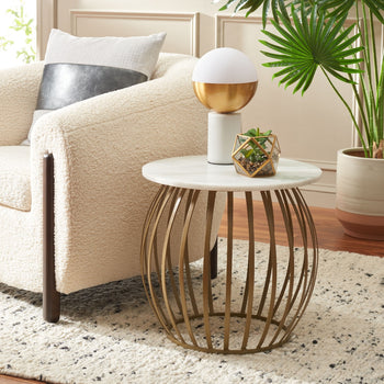 Glamorously artistic drama comes to your decor with this lavish Explorer Accent Table. With an illusionary open gold sphere base and sleek white marble top, Explorer creates an unrivaled aura of decadence in any interior.