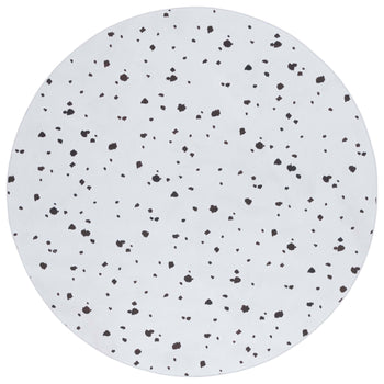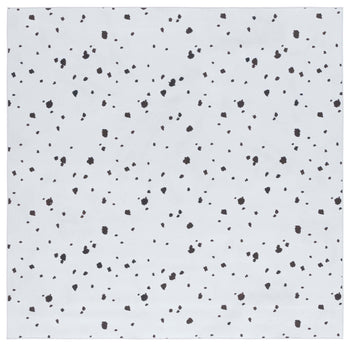 As for style, the rug?s design showcases a playful yet sophisticated pattern. The scattering of black speckles across the ivory background creates a dynamic visual texture that can beautifully break up solid colors or harmonize with more intricate prints.
