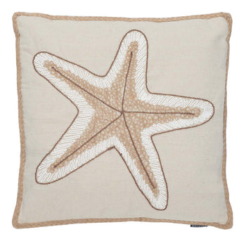 A fine embroidered look beautifully enhances the familiar starfish design of the Hema Starfish Throw Pillow. Sandy neutral tones lend a warm beach vibe to coastal casual room decor, with a handy zipper on back ensuring convenient care and cleaning.