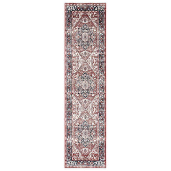 Designed to enrich any hallway or narrow space, this power-loomed treasure boasts a resilient blend of 65% polypropylene, 30% cotton, and 5% polyester, ensuring a durable yet soft texture that's built to last. The intricate pattern, reminiscent of centuries-old designs, weaves a story of historical beauty with each curve and line.