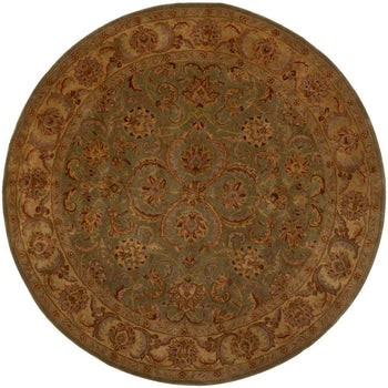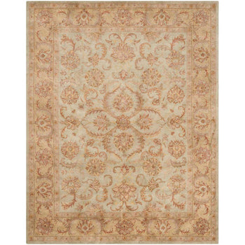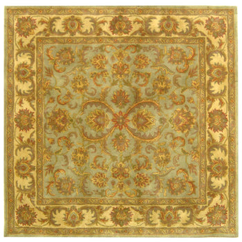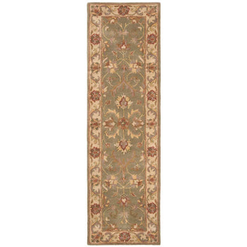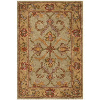 The enchanting green and gold color palette creates a serene and inviting atmosphere, while the intricate pattern is a testament to the rug's artisanal heritage. Each swirl and floral motif is meticulously tufted by hand, ensuring a unique piece rich in detail and quality.