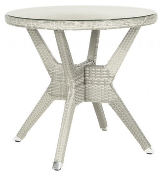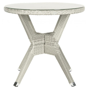 So good looking you will want to use it indoors, the grey Langer round dining table by Safavieh combines the woven look of old fashioned wicker with state of the art weather resistance. This table is crafted of PE wicker and aluminum for easy care.