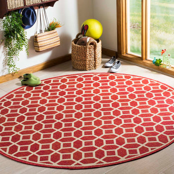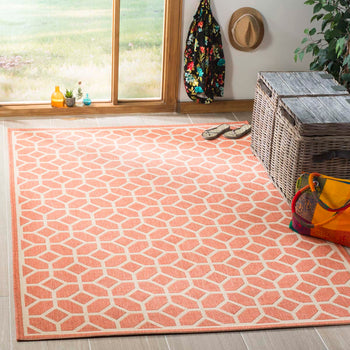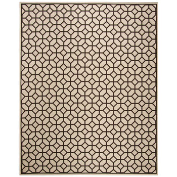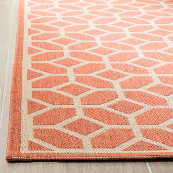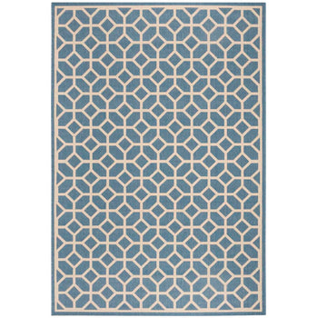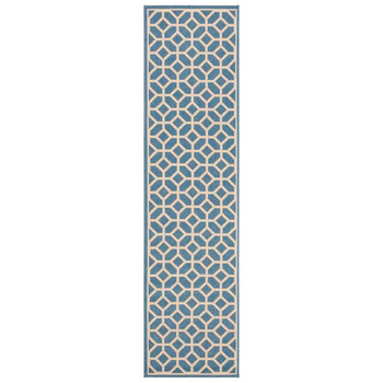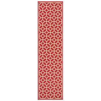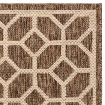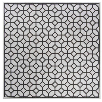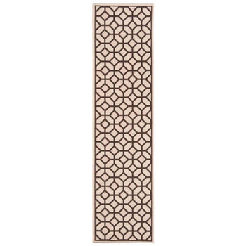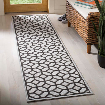 Constructed from 100% Polypropylene Pile, this runner is not only durable but ideal for both indoor and outdoor styling, able to withstand the rigors of high traffic and the elements, all while maintaining its charm. The sophisticated geometric pattern, as visible in the image, features an interlocking design that brings a contemporary flair and visual interest to any area it graces.