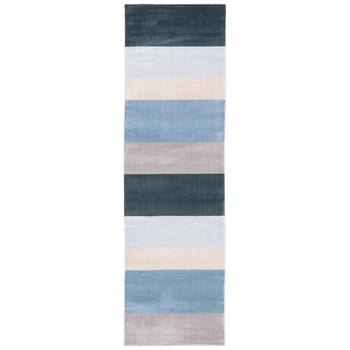 The refined pattern on this rug presents a striking array of graduated horizontal stripes, offering a visual feast that draws the eye without overwhelming your d?cor. Each stripe harmoniously transitions into the next, creating a calming seascape of color that captures the essence of contemporary design.