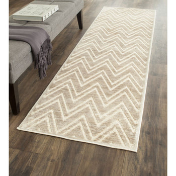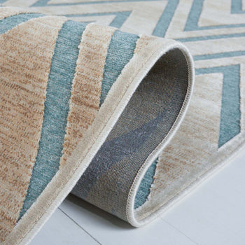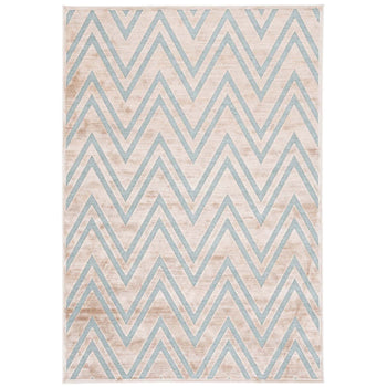 The rug features a captivating chevron pattern that creates a dynamic visual interest. The zigzag lines draw the eye across the rug, making it a centerpiece in its own right. Its stone palette is versatile, perfect for harmonizing with a range of interior styles, from minimalist to more eclectic.