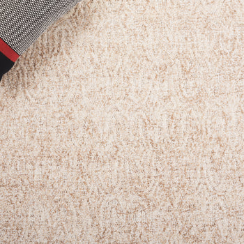 Taking a closer look at the intricate pattern, you'll notice a subtle floral motif gracefully embedded within the rug's design. The understated pattern adds a touch of luxury and refinement without overwhelming your decor. Its neutral beige palette ensures it seamlessly blends with a variety of interior themes, making it a versatile addition to any home.