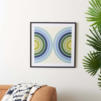 Give A Chic And Vibrant Update To Your Walls With Our Put Your Records On Framed Wall Art. Bold Geometry And Bright Colors Are Combined To Bring Retro Glam To Your Home. Enriched In Lively Shades Of Blue And Spring Green, The Wall Art Remains A Fun Way To Liven Up Any Corner Of Your Home. It Is Printed On Paper To Brighten Up Your Entryway, Living Area, Or Bedroom With A Fresh Punch Of Colors.