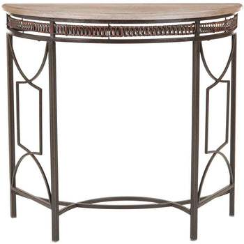 This Rosalie Console updates classic antique elegance for today's interiors. A Victorian inspired iron base is given a contemporary treatment in a rich copper hue, perfectly contrasting with the rustic charm of the red maple finish on its smooth wooden surface.