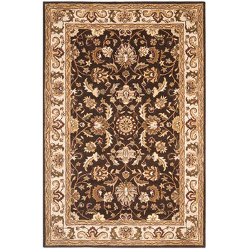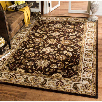 The chocolate and beige color palette creates a warm, inviting atmosphere, while the intricate floral pattern encapsulates a classic aesthetic that will enrich any room's decor. Artful craftsmanship is evident in every detail, from the delicate petals to the ornate border that gracefully frames the rug, hinting at a heritage of artisanal rug-making.