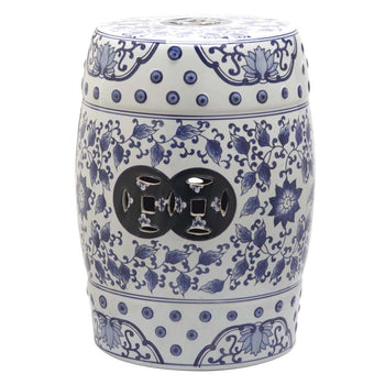 Coveted Yuan Dynasty porcelain comes to today's decor with fresh new style in this Tao Garden Stool. Classically colored in the signature blue and white indicative of fine antique china, Tao's flourishing floral design is accented by pierced double happiness motifs, bringing luck and charm to both indoor and outdoor spaces.