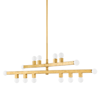 Merging modern simplicity with decorative flair, Sutter plays with parallels. Glass orbs are arranged with thoughtful asymmetries to create balance along a slender frame. Like a Mondrian painting, lines merge and intersect && except when they don't. Available as a sconce or chandelier in either a warm Vintage Gold Leaf or industrial Graphite finish. Part of THELIFESTYLEDCO® collection.