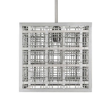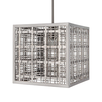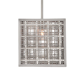 Plaid Patterned Woven Satin Nickel Strips Give Us An Updated Traditional Feel For This Classic Square Pendant. Includes 1-60 Watt Max Edison Socket. Supplied With 15' Wire, 3-12 Stems And 1-6 Stems For Adjustable Installation.