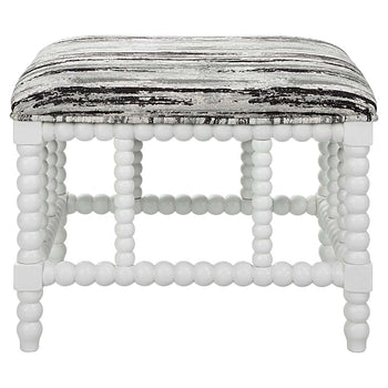 Make A Statement With This Plush, Upholstered Bench. The Cushioned Seat Is Wrapped In A Mottled Gray And Black Chenille, Accented By A Spindle Turned Base Finished In Matte White.