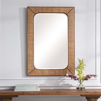 Inspired By Natural Elements And Relaxed Living, This Mirror Features A Woven Rattan Frame Paired With Fir Wood Accents That Is Finished In A Warm Maple Stain. The Mirror Has A 1 1/4 Bevel And May Be Hung Horizontal Or Vertical.