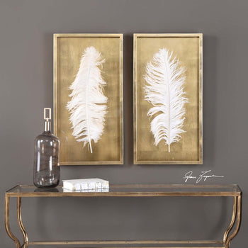 Uttermost's Wall Art Combines Premium Quality Materials With Unique High-style Design.With The Advanced Product Engineering And Packaging Reinforcement, Uttermost Maintains Some Of The Lowest Damage Rates In The Industry. Each Product Is Designed, Manufactured And Packaged With Shipping In Mind. Authentic Lush White Feathers, Under Glass, Showcased In A Pine Wood Shadow Box Featuring A Rich Gold Leaf Finish. May Be Hung Horizontal Or Vertical.