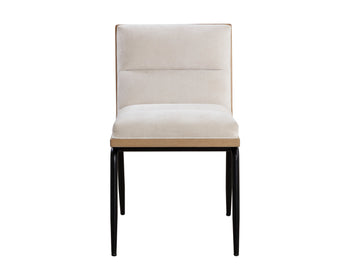 Plush seating and a simple frame make the Abilene Dining Chair versatile and incredibly comfortable. A mixed material seat features our polo club muslin performance fabric on top of a rustic oak wood frame. Paper rope detailing at the back of the chair gives an understated coastal influence while also acting as a functional handle. Powder-coated matte black legs contrast with the light-coloured materials. As wood is an organic, porous material, these pieces will contain natural variation of texture and may also exhibit fine indentations and cracks. Wood pieces will also display a disparity of colour and grain, and visible knots and burls that add to the character of each piece. Due to the natural contents of natural paper rope, it is advised to minimize contact with strongly dyed fabrics to avoid discolouration and/or colour transfer.