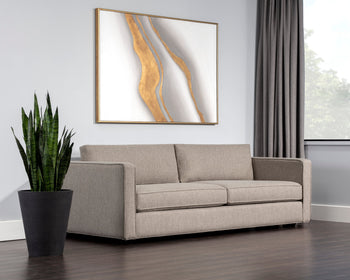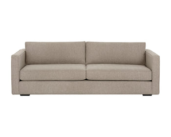 This sofa boasts transitional style with a classic silhouette. Features a comfortable seat with all around piping for added definition. Stocked in liv wicker performance fabric. Liv performance fabric features 32% REPREVE polyester; it is moisture repellent, durable and easy to clean. REPREVE polyester is a high-quality yarn made from recycled post-consumer plastic bottles.
