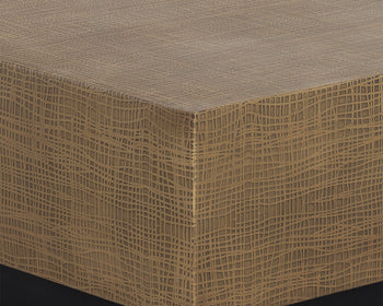 The Albans Coffee Table celebrates the beauty of handcrafted design. Constructed from iron with an burnished brass finish, the structured tabletop features an intricate etched design. A black powder-coated iron base completes the look. Made in India. With refined craftsmanship, this design was brought to life by skilled local artisans. Due to the nature of handcraftsmanship, unique imperfections such as fissures, markings and variations in colour and shape are welcomed and appreciated characteristics for a truly one-of-a-kind piece.