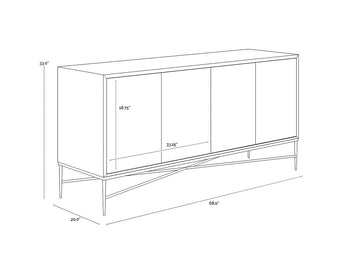 | Additional Info | Solid Mango Wood / Champagne Gold Aluminum Cladding on Door Fronts / Push to Open System / Cord Management Opening / Anti-Tipping Kit Included |