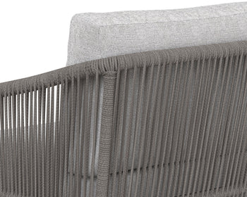 Introduce refined modern style outside with this impressive swivel armchair from the Outdoor by SUNPAN collection. Upholstered in gracebay light grey fabric with a powder-coated warm grey aluminum frame. Completed with grey rope weaving on the seat exterior.