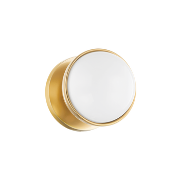 Opal glass spheres are held gem-like within a Polished Nickel or Aged Brass setting, bringing a modern jewelry aesthetic to the bath or powder room. The two-, three-, and four-light options are displayed within an elegant metal racetrack frame and can be mounted vertically or horizontally making them perfect solo above a mirror or in pairs alongside it.
