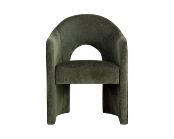 The appealing curves of the Anaya Dining Armchair will cradle you in exquisite comfort. Crafted with a beautiful arched silhouette that will add elegance to a dining table. Fully upholstered in our gorgeous bergen olive fabric for a versatile seat that can also be used as an accent chair.