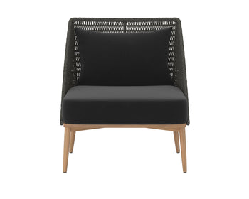 Lose track of time while relaxing in this outdoor lounge chair from the new Outdoor by SUNPAN collection. This modern design features a tapered seatback covered in greymix weave with a palazzo taupe seat and natural teak wood base. Suitable for indoor and covered outdoor spaces.