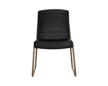 A handsomely designed dining chair with a sculpted seat and seatback for comfort and style. Stocked in vintage black faux leather with an exposed rustic bronze steel cantilever frame. Can be placed in urban and contemporary dining and office spaces. Handle With Care: This design has been crafted with faux leather. Faux leather is manufactured to reflect the natural characteristics of leather; as such, colour variations, markings wrinkles, grooves, and light scratches are appreciated characteristics. No two pieces will be alike. Visit our Product Care page for more information on how to ensure the lasting beauty of this piece.