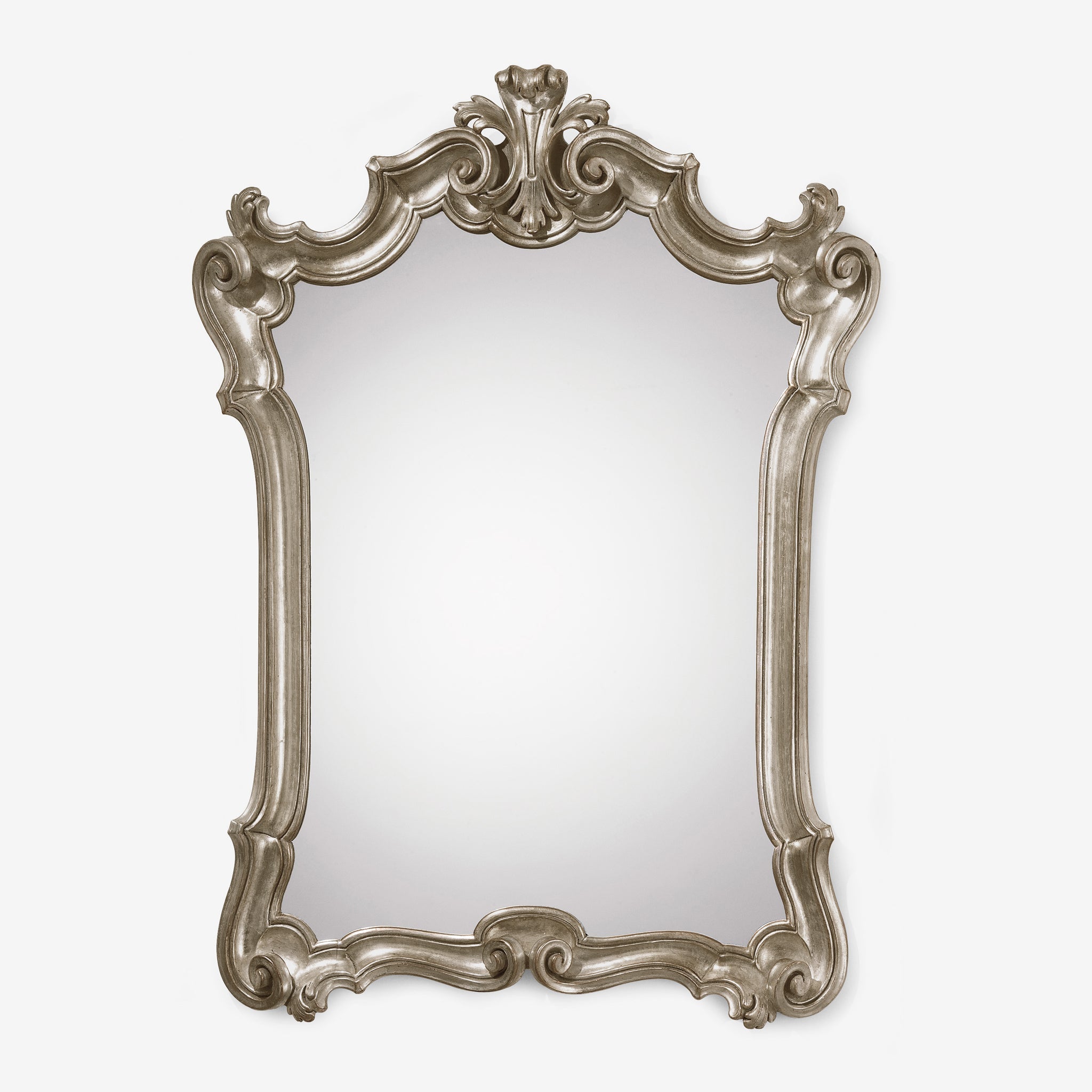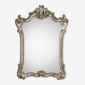 - Carved wood mirror with antique silver leaf finish