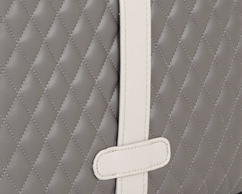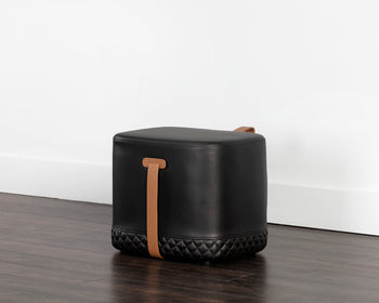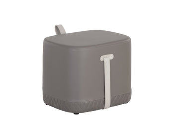A masculine square ottoman stocked in a napa taupe faux leather with a contrasting napa stone faux leather strap. Diamond tufting completes the design. Handle With Care: This design has been crafted with faux leather. Faux leather is manufactured to reflect the natural characteristics of leather; as such, colour variations, markings, wrinkles, grooves, and light scratches are appreciated characteristics. No two pieces will be alike. Visit our Product Care page for more information on how to ensure the lasting beauty of this piece.