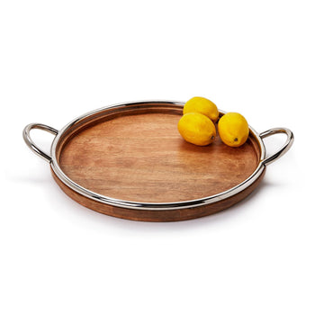 Two's Company Bedford Grand Decorative Round Serving Tray - Mango Wood/Steel