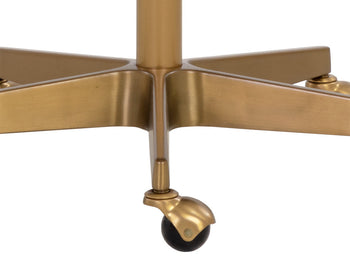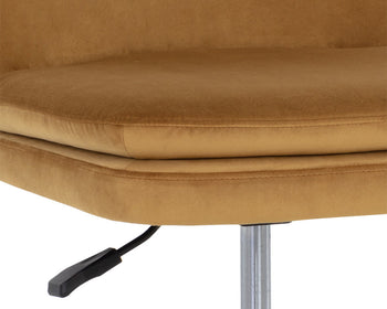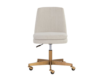 Infuse a touch of glamour to any workspace with this fabulous modern office chair. Stocked in mina ivory fabric and completed with a matte gold stainless steel base. Castors complete the look for added mobility.