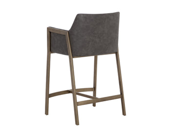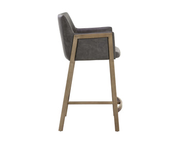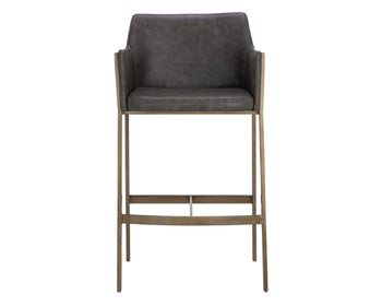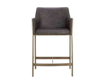 The Bernadette Counter Stool features a shapely design with a powder-coated antique brass frame. Upholstered in kendall grey faux leather for added style and durability. Handle With Care: This design has been crafted with faux leather. Faux leather is manufactured to reflect the natural characteristics of leather; as such, colour variations, markings wrinkles, grooves, and light scratches are appreciated characteristics. No two pieces will be alike. Visit our Product Care page for more information on how to ensure the lasting beauty of this piece.