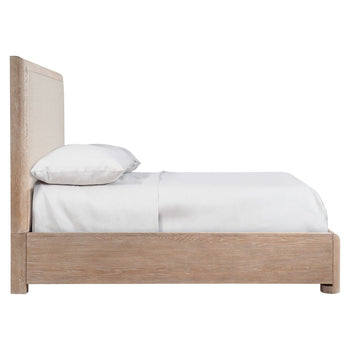 The Aventura panel bed builds on familiar forms with a fresh, modern update for a look with bright, casual sophistication. Inset upholstered panels highlight the headboard and the low footboard. The Marcona finished wood frame adds dimension and a rustic style.