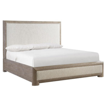 The Aventura panel bed builds on familiar forms with a fresh, modern update for a look with bright, casual sophistication. Inset upholstered panels highlight the headboard and the low footboard. The Marcona finished wood frame adds dimension and a rustic style.