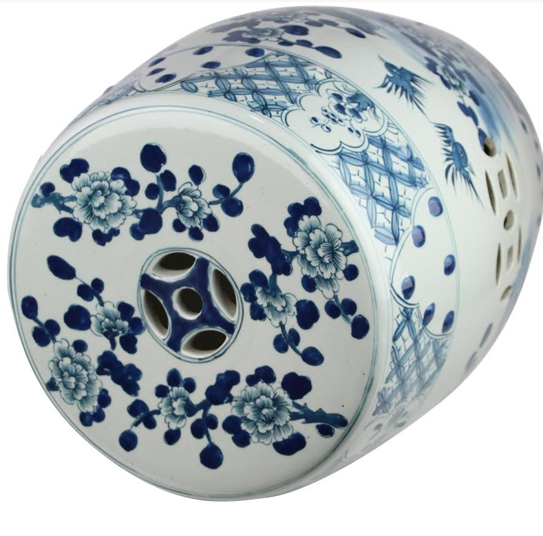 The Enchanted Home Bird and Floral Garden Seat with Raised Blue Dots