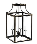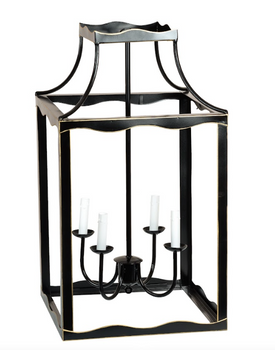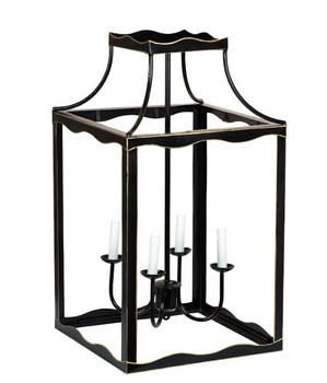 Introducing our elegant Black & Gold Lantern, a must-have for any luxurious space. Its hand-painted gold trim adds a touch of opulence. Includes chain and ceiling cap for easy hanging. Electrified for your convenience. The perfect addition to your home decor.
