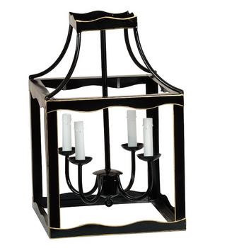 Introducing our elegant Black & Gold Lantern, a must-have for any luxurious space. Its hand-painted gold trim adds a touch of opulence. Includes chain and ceiling cap for easy hanging. Electrified for your convenience. The perfect addition to your home decor.
